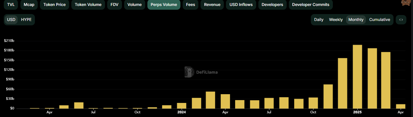 Moreover, while stats are down across the board, volume still stays relatively high on HL, cornering the Perp Dex market despite a massive surge in competitors.