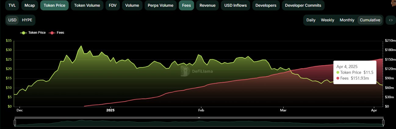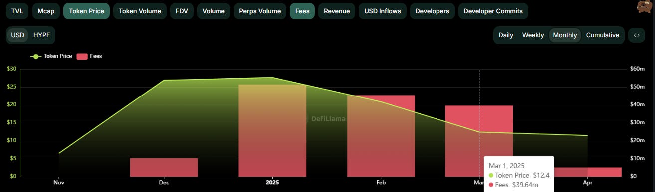 According to Defillama, HL has done ~USD $150m in cumulative fees since the start of 2025, averaging ~$40M a month so far.