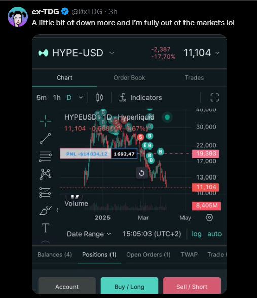 Last point here is that $HYPE ATH was ~$34 and this was probably 30-40x the previous net worth of most traders. $HYPE OI is often high even when the rest of the market is down, leading to more lev long and therefore capitulation.