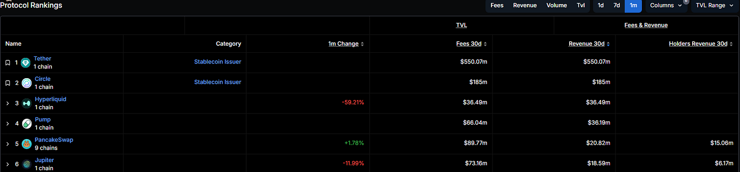 With the drop in Solana gambling, Hyperliquid is also THE definitive fee generator in all of crypto, outside stablecoins.